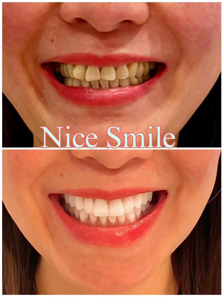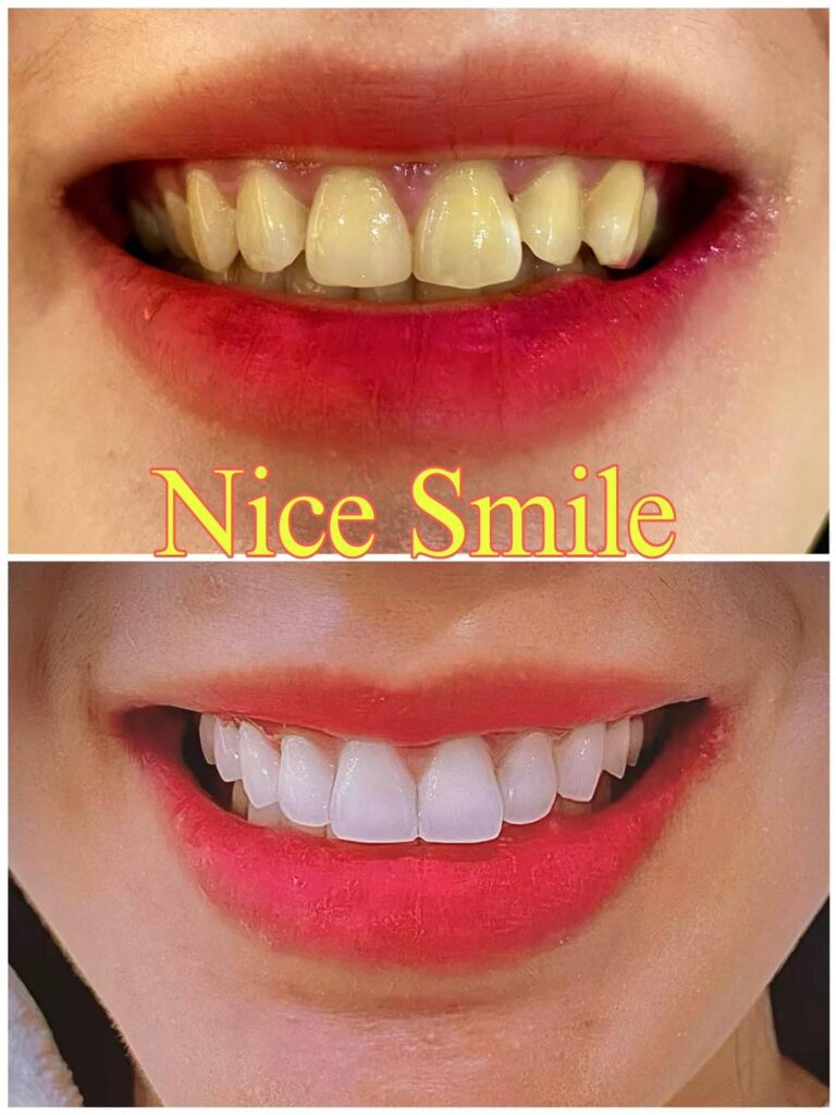 – Tẩy trắng răng sử dụng gel chuyên nghiệp: Nice Smile sử dụng gel tẩy trắng chuyên nghiệp có chứa các hợp chất an toàn cho răng và lợi. Điều này đảm bảo rằng quá trình tẩy trắng không gây hại cho răng và lợi của bạn.